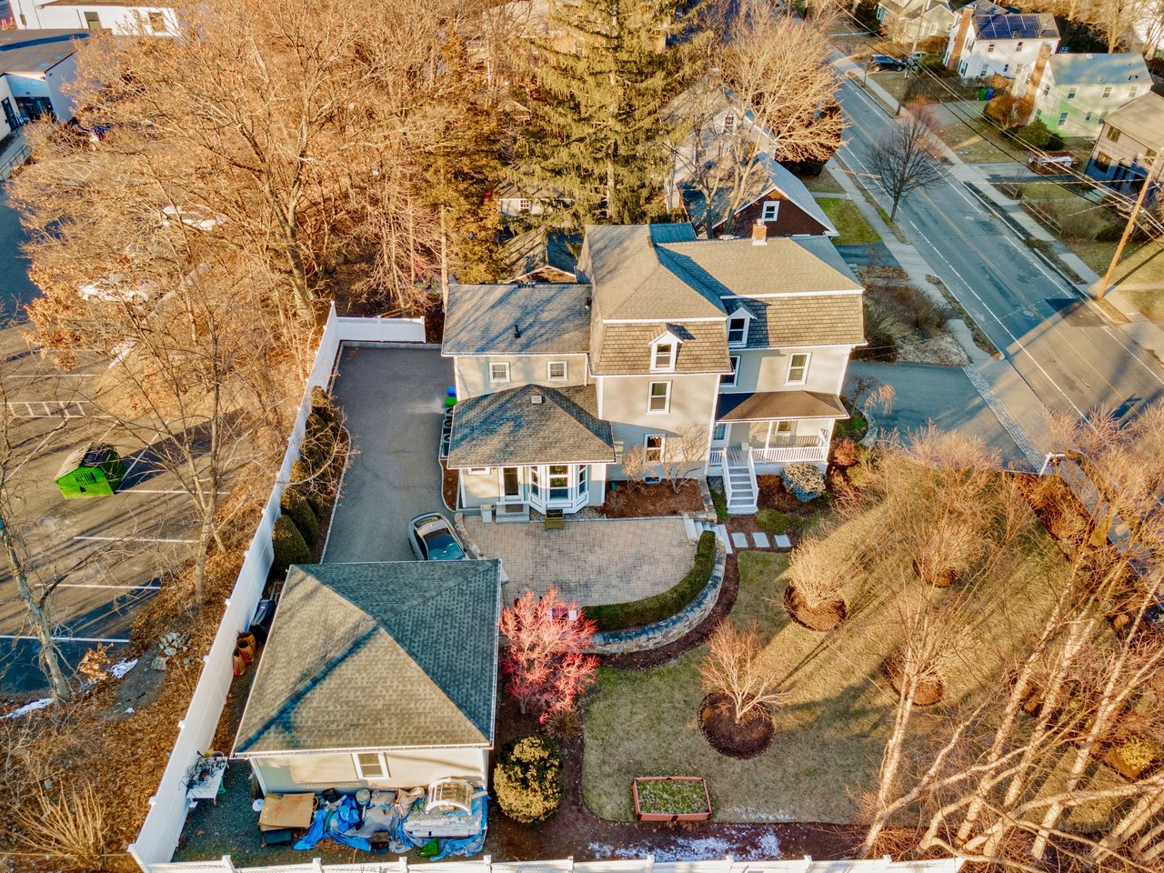 Beautiful Newton Highlands Victorian set on the highest point of Winchester St. has so much to offer. Converted into a single family, this home is zoned as a 2 family which allows for versatility. Renovations over the years has kept this home with the unique character of a Victorian but with a modern flair. 3 levels of spectacular living. 1st level hosts a beautiful eat-in kitchen with built ins, a big walk in pantry & 3 additional well appointed large rooms allowing for dining, living, family, office or a 1st floor bedroom & a full bathroom. Use the front or back stairs and head to the 2nd level with 3 bedrooms, a living/sitting room & enormous bathroom/dressing room which was once a kitchen & can easily be transformed back if converting to a 2 family. 2 car garage with lots of additional parking. A beautiful setting outside with a patio, yard, plantings & perennials for outdoor entertaining. Location absolutely unbeatable. Walk to train, restaurants, shopping & Newton Highland park!